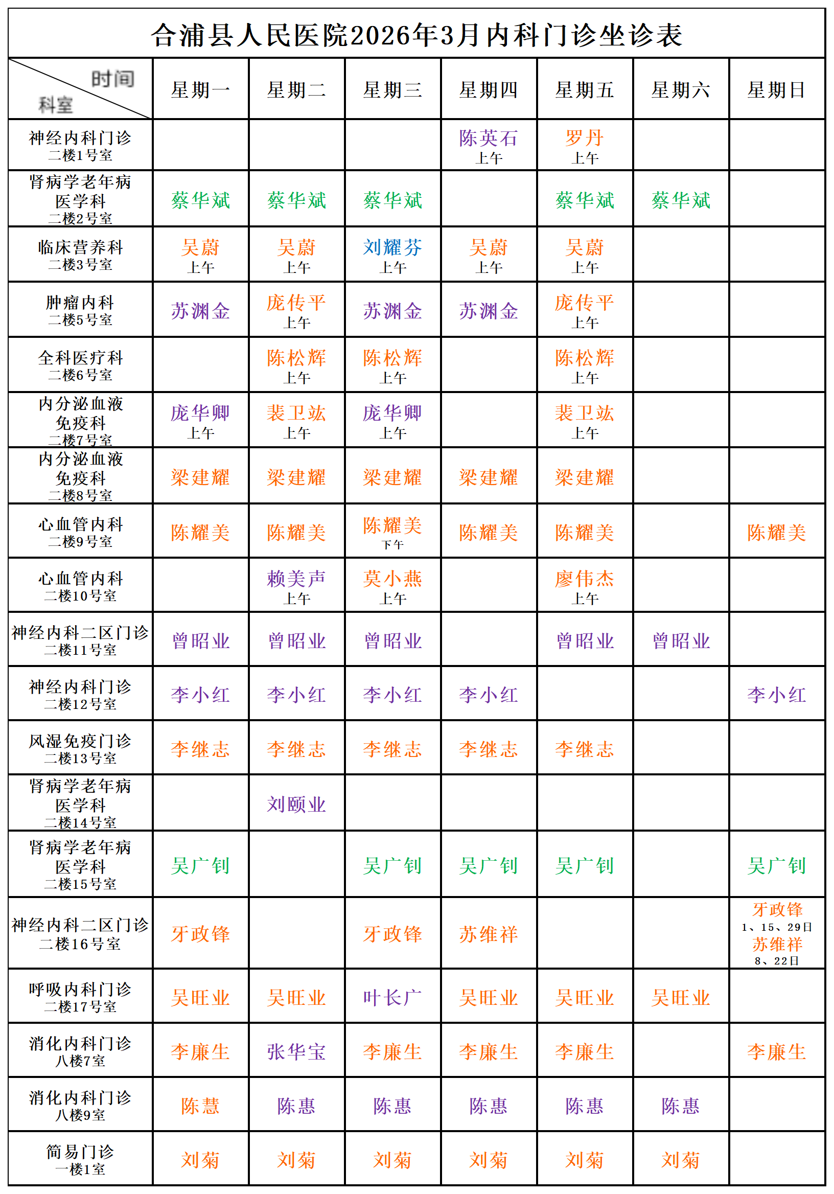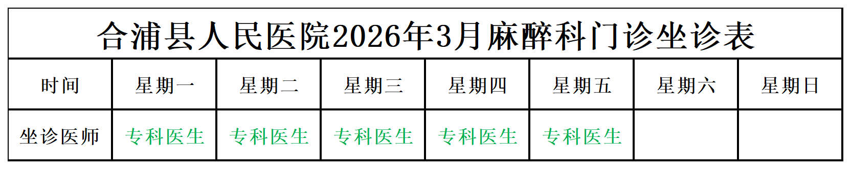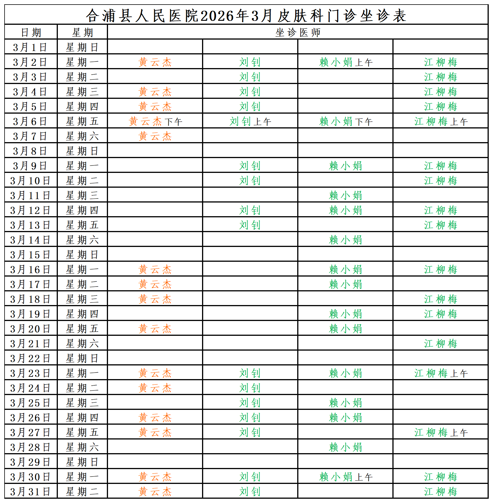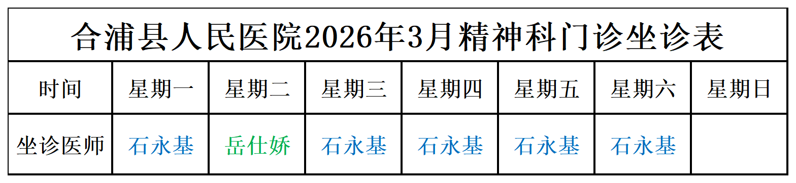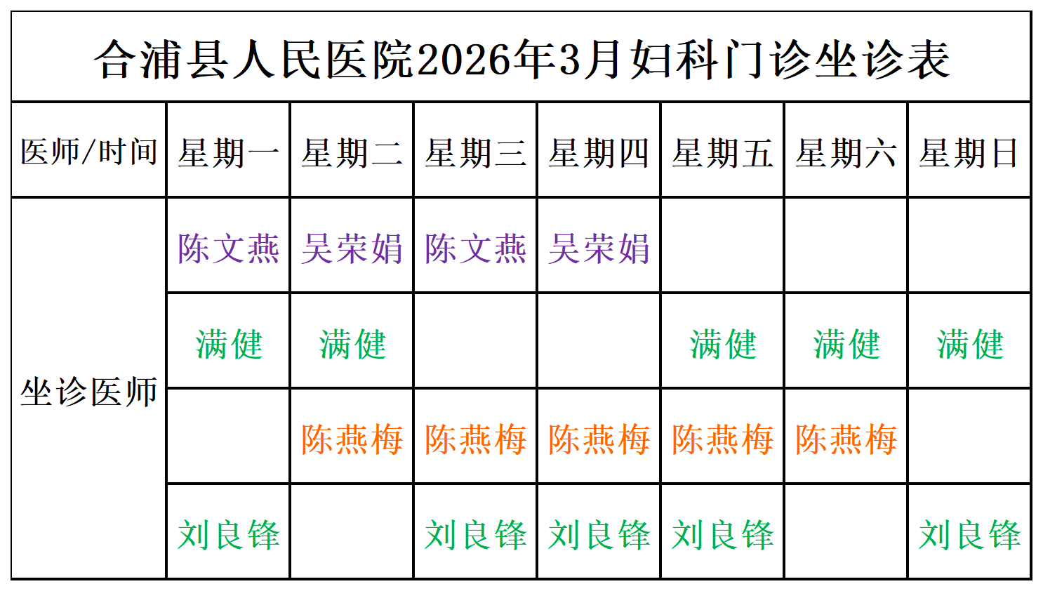 2026年3月门诊坐诊安排