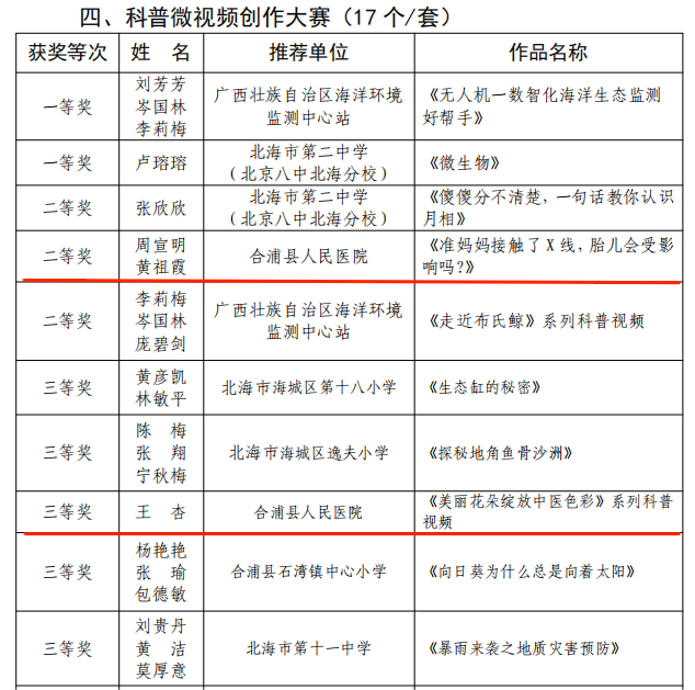 在北海市2024年科学传播大赛中,我院的两个作品脱颖而出,成功获奖,展现了我院在医学科普领域的卓越实力!快来一起看看...