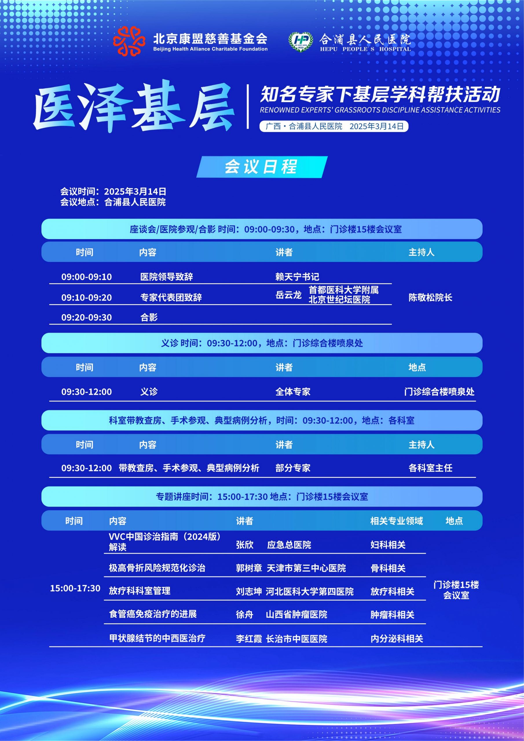 春意渐浓的3月,一场汇集京津冀晋四省市19名专家的基层医疗活动如期而至。14日,我院与北京康盟慈善基金会联合举办“医泽...