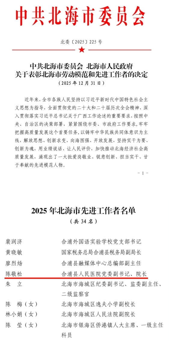 近日,中共北海市委员会、北海市人民政府印发《关于表彰北海市劳动模范和先进工作者的决定》(北委〔2025〕225号),对在...