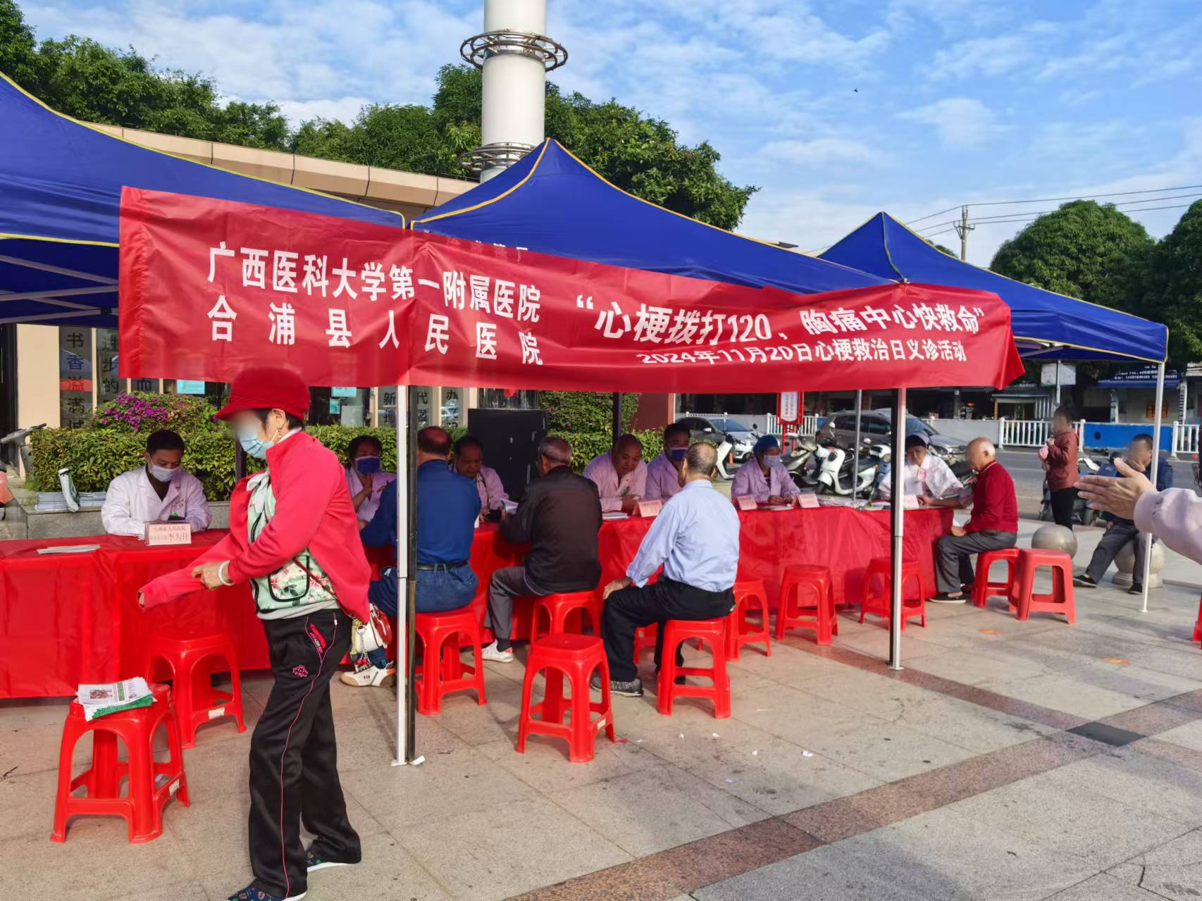 2024年11月20日是第十一个“中国心梗救治日”,当天,我院组织广西医科大学第一附属医院派驻专家、我院相关学科医疗专家以及志愿护理服务队在廉州广场开展了以“心梗拨打120,胸痛中心快救命!”为主题的义诊宣教活动,让群众科学、理性地认识心肌梗死,提高对急性心肌梗死的防范意识。